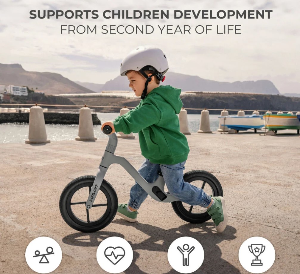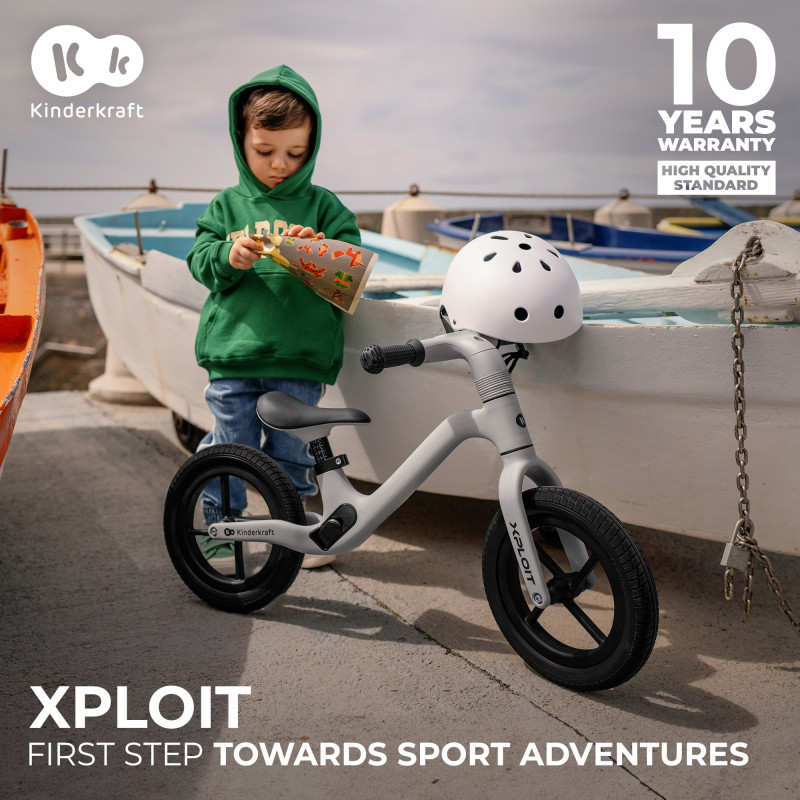 XPLOIT je balans bicikl dizajniran za vožnju u svim uslovima. Ima velika PU točkove otporne na bušenje, koja se ne pumpaju – pogodna su za neravne terene, asfalt ili utvrđene šumske staze. XPLOIT bicikl uči kroz igru: savršeno razvija osjećaj ravnoteže i pomaže djeci da nauče kontrolisati tijelo – idealan uvod u vožnju klasičnog bicikla s pedalama.