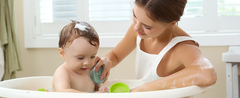 Ergonomske silikonske četke za kupanje efikasnije čiste od ruku ili peškira, štiteći bebinu glavu od ogrebotina i pomažu ukloniti naslage na kosi.
