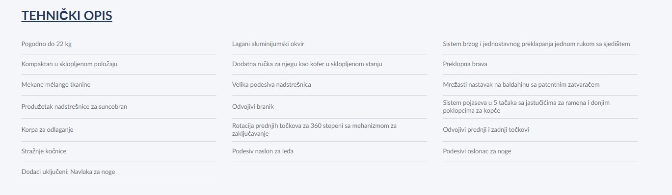 | Kategorija | Klasicna i lagana kolica |