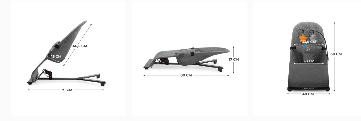 Njanjalica dolazi s uklonjivom trakom s 2 igračke, koja čini vrijeme odmora zabavnijim za dijete. Naslon njanjalice podesiv je u 3 nivoa, što omogućava jednostavno prilagođavanje potrebama djeteta.