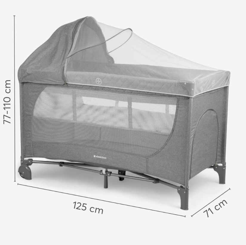 Dvostruki nivo za spavanje – Nudi dvije pozicije za spavanje: drugi nivo je pogodan od rođenja do 6 mjeseci (do 9 kg) i lako se uklanja pomoću rajsferšlusa kada je dijete spremno za prvi nivo, koji je pogodan do 36 mjeseci (do 15 kg).
